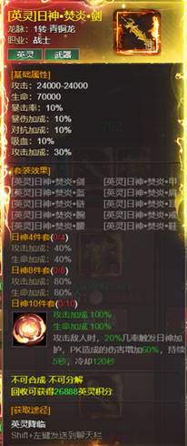 ②已有全套月神胧明装备的玩家,参与此次活动获得的重复月神胧明装备,可进行回收获取英灵积分,兑换相同部位的日神焚炎装备一件;