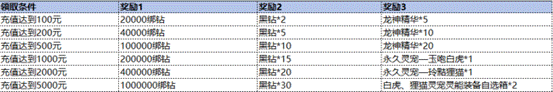 活动内容:活动期间内,限时累计充值达到指定档位,可领取对应档位奖励。